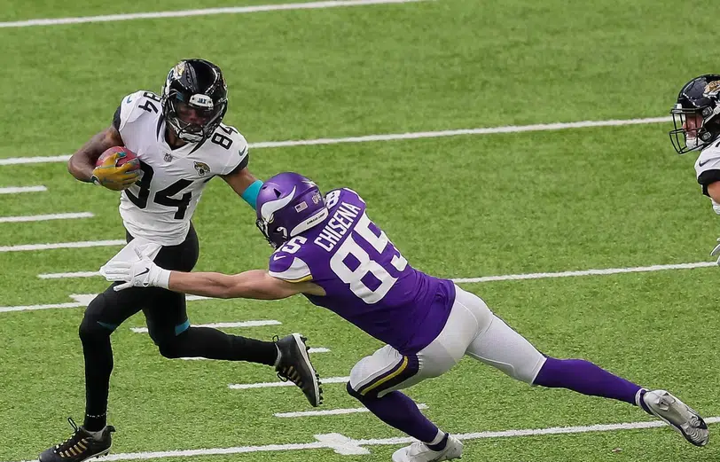 Justin Jefferson had nine catches for 121 yards and a touchdown for the Vikings, who outgained the Jaguars 420-390. Dalvin Cook overcame a slow start to finish with 32 carries for 120 yards.