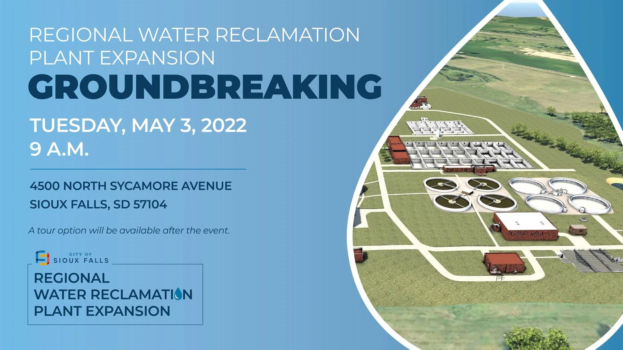 SIOUX FALLS, S.D. (KELO.com) The City of Sioux Falls holds a groundbreaking Regional Water Reclamation Plant Expansion at 9 a.m. Tuesday. The event is at 4500 N. Sycamore Ave. There will be tours available to the public and media after the event.