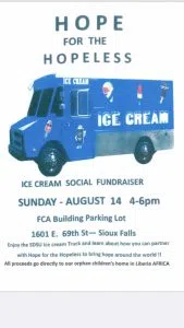 SIOUX FALLS, S.D. (KELO.com) — The SDSU Ice Cream Truck is coming to Sioux Falls on Sunday afternoon. Hope for the Hopeless is holding the ice cream fundraiser from 4-6 p.m., to help orphaned children in Liberia. 100% of the proceeds will be going toward a 40-room dormitory in Liberia that is close to completion. The fundraiser will be held in the FCA parking lot at 1601 E. 69th Street on Sunday, August 14th.
