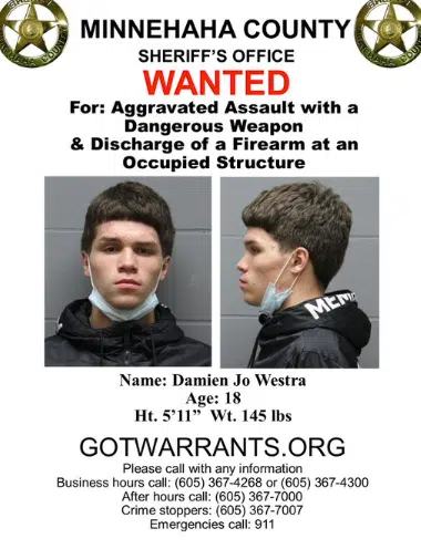 If you have any information as to his whereabouts, contact the Minnehaha County Sheriff’s office at 605-367-7000.